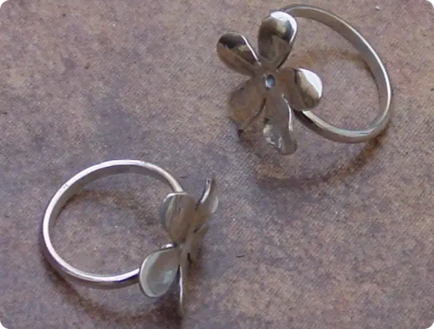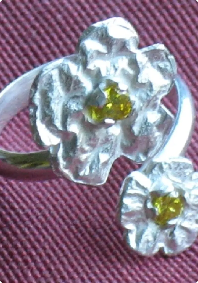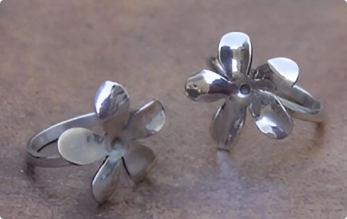Plata retraida. Las flores se hacen una a una jugando con el calor instantes antes de que se funda la plata.