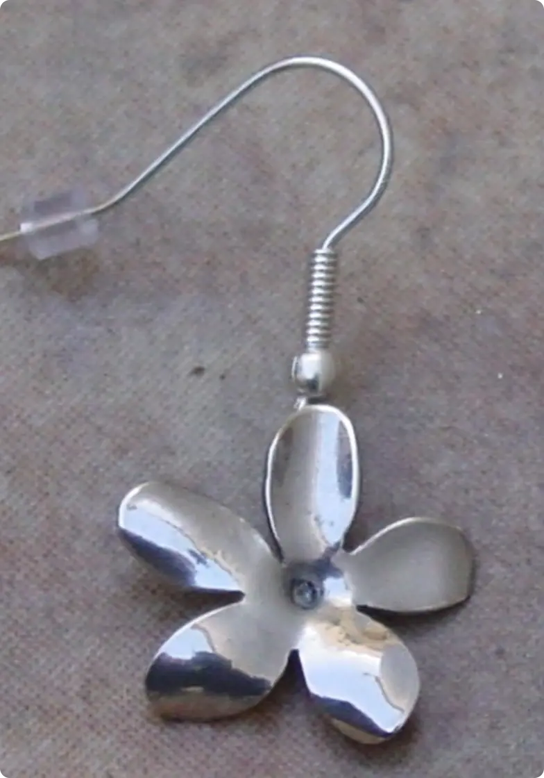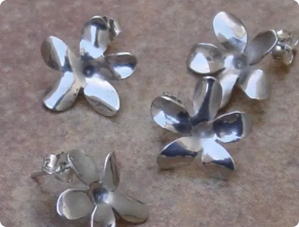 Plata retraida. Las flores se hacen una a una jugando con el calor instantes antes de que se funda la plata.